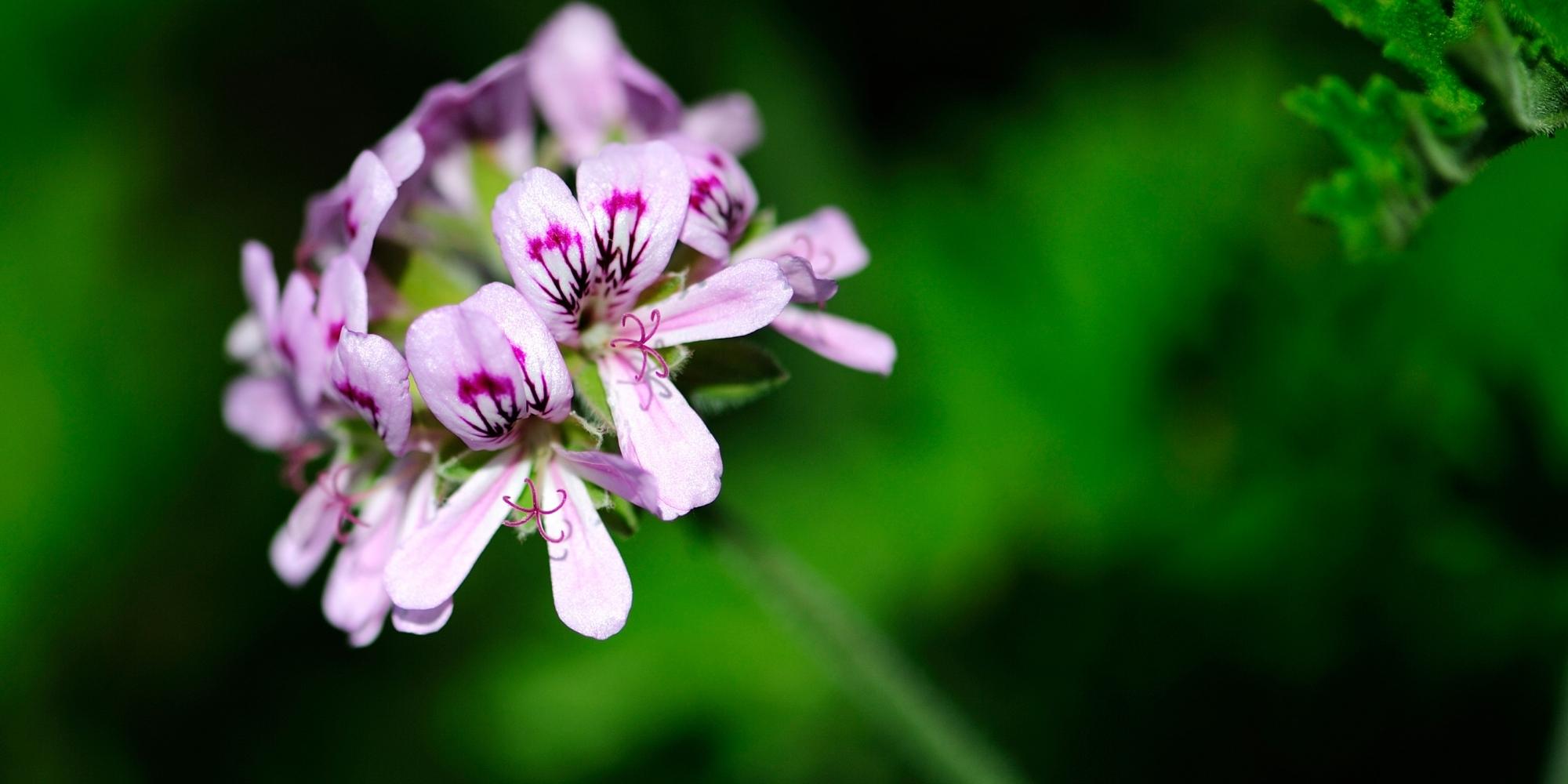 The Pelargonium Graveolens - Citronella Geranium, also known as 'Scented Geranium', this plant is an upright evergreen perennial used primarily for the scent it exudes. Its soft green, deep, crinkle cut, serrated leaves are strongly scented with a sharp, citrus scent and becomes more potent when the leaves are bruised. Small clusters of tiny lavender-pink flowers with crimson details bloom in the summer.