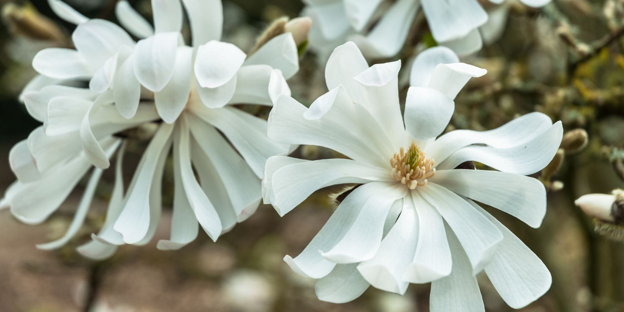 The Magnolia stellata - Royal Star Magnolia is a low maintenance shrub that likes fairly moist soil in full sun or partial shade and is relatively pest free. Royal Star is a popular variety with slightly larger and showier blooms than other magnolia. Blooms are fragrant, star shaped with 15-30 narrow white petals, typical bloom is about 3”-4” wide. This cultivar blooms about 2 weeks later than other Magnolia varieties. It is more often grown as an open-branched, multi-trunked large shrub or small tree.